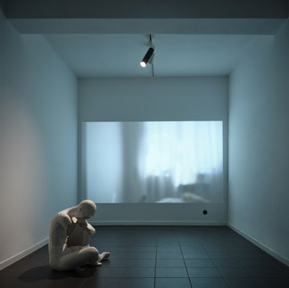 Geometrické zásahy, které figury narušují, lze číst jako vnější vlivy – očekávání, vztahy, představy druhých – které se do těla zapisují a spoluutvářejí jeho identitu. Nejde o ostré oddělení vnitřního a vnějšího. Tělo se otevírá, ztrácí svou uzavřenost, a tím i jistotu vlastní celistvosti. Každá ze soch zachycuje jinou podobu tohoto procesu: narušení hranic, zranitelnost vystaveného nitra i moment rozpadu, který je zároveň podmínkou možného nového uspořádání. Identita zde není pevná, ale vzniká v napětí mezi tím, co je naše, a tím, co do nás přichází zvenčí. Právě v tomto napětí se konejšení ukazuje jako ambivalentní gesto – není jen utišením, ale i vědomím zranitelnosti, kterou nelze zcela odstranit.